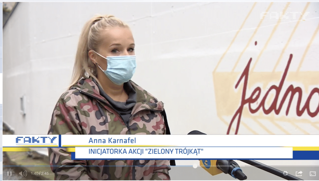 Pani Krystyna w materiale Fakty TVN, gdy dziennikarz pokazuje jej ekomural, mówi: „Jeśli faktycznie są tego typu farby to, to jest fajna sprawa.”